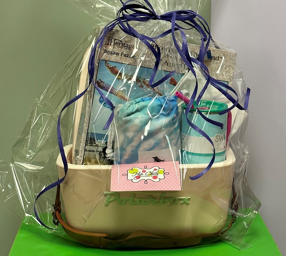 Polarbox 13qt. Nude cooler with brown strap Heritage 550 piece puzzle "Blowing in the Wind" Dock+Bay 100% recycled Quick Dry Towel XL Swig 40oz. Tumbler "Prep Rally" Scout Wristy Business Wristlet "Swim Lane"