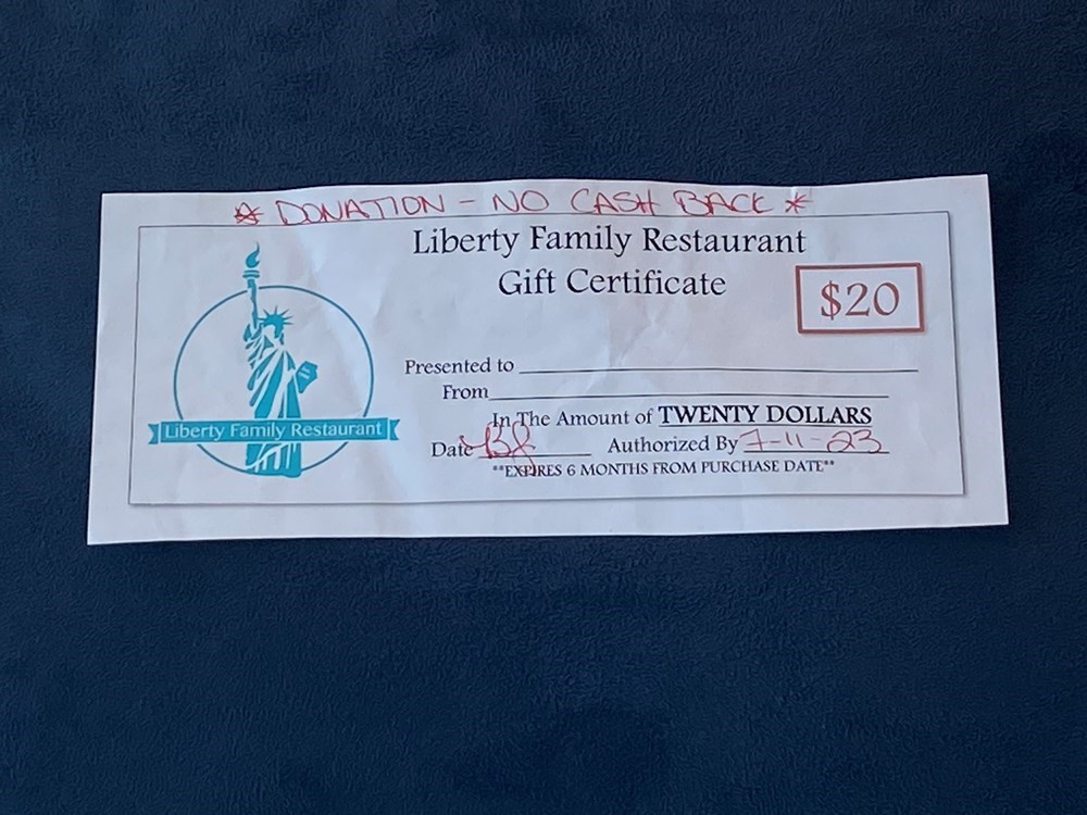 Liberty Family Restaurant gift certificate