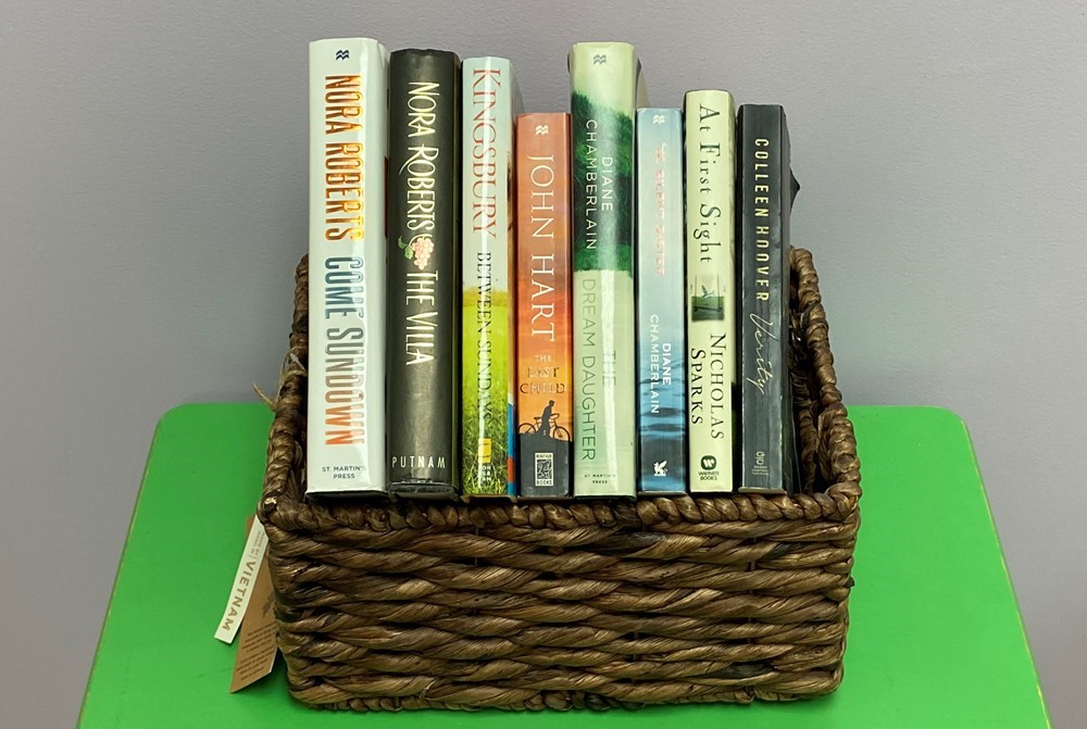 8 Books: Nora Roberts: Come Sundown, The Villa Karen Kingsbury: Between Sundays John Hart: The Last Child Diane Chamberlain: The Dream Daughter, The Silent Sister Nicholas Sparks: At First Sight Colleen Hoover: Verity