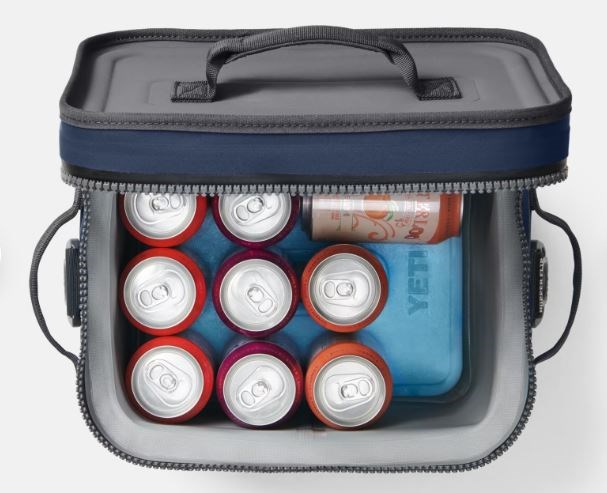 Just what you were looking for to keep your drinks chill! Soft cooler Fits 24 cans (only) Fits 7 kg of ice 14.3' wide 12" tall 10.7' deep